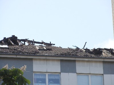 Daraufhin wurden der Löschzug der Hauptfeuerwache und die Freiwillige Feuerwehr Gaarden alarmiert. Schon während der Anfahrt zur Einsatzstelle war eine starke Rauchentwicklung aus dem Dachstuhl erkennbar. Beim Eintreffen sahen die ersten Einsatzkräfte das ganze Ausmaß: Der Dachstuhl stand in Vollbrand. Sofort wurde die Menschenrettung über die Drehleiter und das Treppenhaus vorgenommen, um die sich noch in dem Haus befindlichen Bewohner in Sicherheit zu bringen. Weitere Trupps rüsteten sich mit schwerem Atemschutz und C-Rohren aus, um die Brandbekämpfung vorzunehmen. Da noch weitere Kräfte erforderlich waren, wurden die Freiwillige Feuerwehr Suchsdorf und die Atemschutzlogistikgruppe der Freiwilligen Feuerwehr Wellsee sowie der Einsatzleitwagen ELW 2 des Fernmeldezuges und die Betreuungsgruppe des DRK zur Einsatzstelle nachalarmiert. Auch mehrere Drehleitern wurden für die Brandbekämpfung im Außenbereich nachgefordert. Mit der Hilfe von drei Drehleitern konnte man gegen 7:00 Uhr „Feuer unter Kontrolle“ melden. Aufgrund der lang andauernden Löscharbeiten wurde die Verpflegung-Logistikgruppe der Freiwillige Feuerwehr Russee angefordert.