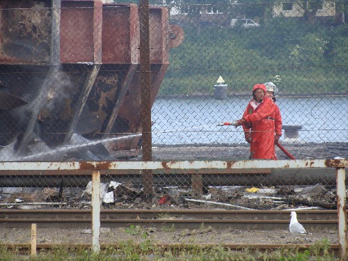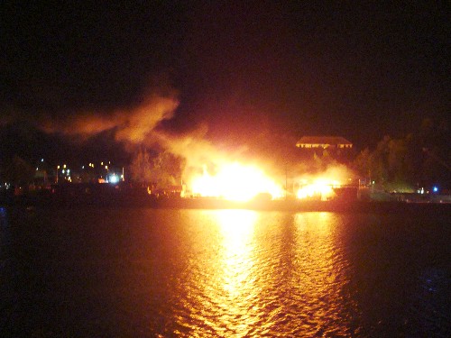 Mittlerweile wurde auch von der Wasserseite aus, durch das Feuerlöschschiff der MS-Kiel, einem Schlepper und dem Seenotrettungskreuzer Berlin der DGzRZ, mit der Brandbekämpfung begonnen. Erst durch das Einsetzen der Schiffe und des Löschschaums konnte man gegen 03:30 Uhr das Feuer unter Kontrolle bringen.