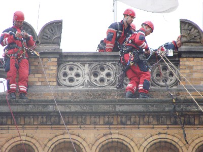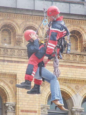 Auf dem Programm standen die Themen Brandschutz, Hilfeleistung und Rettungsdienst. Die Höhenrettungsgruppen der Berufsfeuerwehr führten in Atemberaubender Höhe das Retten von Personen vor wo keine Drehleiter mehr hin kam. Man konnte sich in einem Höhenrettungskorb durch einen Feuerwehrkran in 35 m Höhe befördern lassen, und den Ausguck geniessen, sowie sich ein Bild von der Höhe in der die Höhenretter arbeiten machen. Leute die sich nicht so direkt der Höhe stellen wollten konnten sich die Feuerwehrfahrzeuge anschauen und sich Informationen über die Fahrzeuge und arbeit der Feuerwehr in Hannover einholen. Es ist ja in den letzten Jahren immer mehr und umfangreiche Technische Hilfeleistung hinzugekommen wie z.B. die Personenbefreiung aus Aufzügen , das einfangen von ausgesetzen Tieren, das öffnen von Wohnungstüren und vieles mehr. Auch Autofahrer konnten sich zum Thema Erste Hilfe Informieren und an einer Puppe die Beatmung und Herzdruckmassage trainieren. Ein Stand daneben war die Deutsche Teddy-Stiftung wo man Teddybären käuflich erwerben konnte und gleichzeitig eine spende für Kinder zufloss. Ziel dieser Stiftung ist es, Kindern zu helfen. Und unsere kleinen Besucher wurde es ermöglicht sich auf ein Feuerwehrmotorrad fotografieren zu lassen. Nun kommen wir zu den heileid des Tages von Playmobil, es waren mehre Einsatzsimulationen dargestellt aus Playmobielspielzeug die man so im Laden nicht zu kaufen bekommt. Die Modelle sind alle selbst eigendhändig zusammengebaut worden.