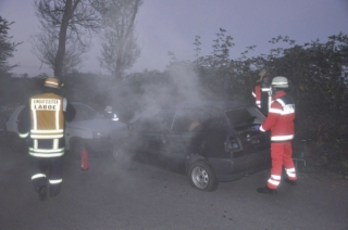 Sofort begann der zuerst eintreffende Rettungsdienst mit der Patienten Versorgung im nicht brennenden PKW.