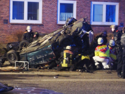 Für eine 14jährige Jugendliche und einen 19jährigen Mann, die Insassen des BMW waren kam jede Hilfe zu spät, sie verstarben noch am Unfallort. Die vier weiteren zwischen 14 und 20jährigen Insassen des BMW kamen mir schweren Verletzungen in Kieler Krankenhäuser, ein Insasse schwebt in Lebensgefahr.