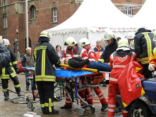 Am Samstag den 25.05.2013 fand in der Kieler Innenstadt ein Rotkreuztag zum 150 Jährigen Jubiläum des Deutschen Roten Kreuzes statt. In der Zeit von 10:00 Uhr bis 18:00 Uhr konnte man viel über die Arbeit der Hilfsorganisation sehen und hören. An verschiedenen Standpunkten gabes viel zu entdecken, es fing an der Kieler Schevenbrücke an dort wurde für die kleinen Gäste ein Bärenhospital aufgebaut. Sokonnten die kleinen sehen was z.B passiert wenn man beim Röntgen istund sich in der Ersten-Hilfe erproben. Zudem konnten die Kinder Glücksrad drehen, Malen und sich Schminken lassen.