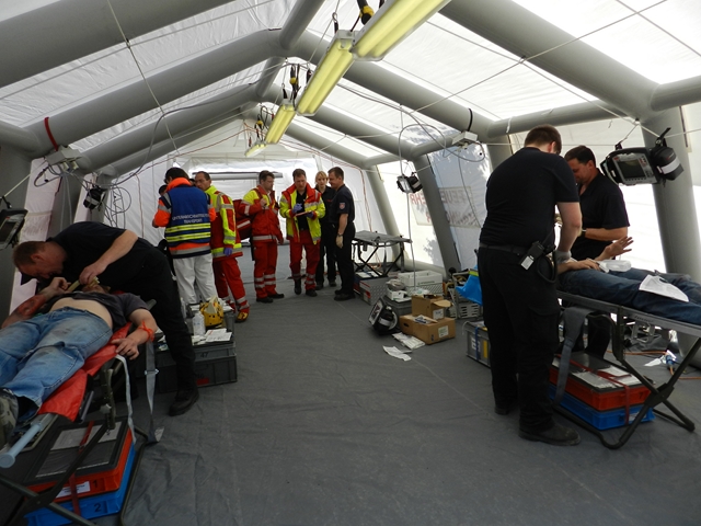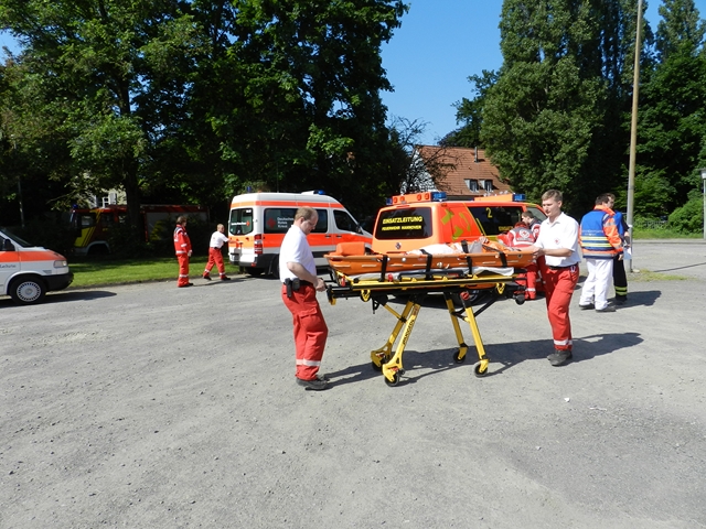 Ein Modul bei diesem simulierten Großschadenereignis war ein Einsatzabschnitt Rettungsdienst unter Führung eines Organisatorischen Leiters Rettungsdienst (OrgL) und eines Leitenden Notarztes (LNA). Sie koordinieren die Sichtung, Behandlung und denTransport der Verletzten. Die bei dieser Einsatzübung eingebundenen Notärzte wurden durch die Teilnehmer eines Kurses für Leitende Notärzte der DRK-Rettungsschule aus Goslar gestellt.