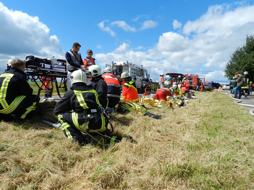 Großübung: Übungsszenario stellte eine Massenkarambolage mit PKW's und einem Bus