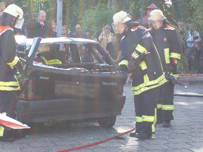 Am Samstag den 13.09.2008 war es so weit die Berufsfeuerwehr Kiel hat ihre Tore für die Kieler und Auswärtigen geöffnet. Beginn war 10.00 Uhr bei der Hauptfeuerwache am Westring und es wurde ein Shuttelbus eingesetzt der ab Wilhelmplatz bis zur eingerichteten Haltestelle "Hauptfeuerwache" hin und her gefahren ist. Schon von weiten konnte man die roten Löschfahrzeuge vor den Toren stehen sehen. Gegen 11.00 Uhr haben der Amtsleiter Dr. Herr Kirchhoff und die Oberbürgermeisterin Frau Volquartz mit einer Eröffnungsrede den Tag der offenen Tür Eröffnet. Auf den Hof standen sie nun die roten großen Löschfahrzeuge zum Besichtigen aber das war noch nicht alles. Man konnte die Wache und die Intregierte Regionalleitstelle Mitte (IRLS) Besichtigen. Auch die Einsatzfahrzeuge des Rettungsdienst der Feuerwehr konnte man besichtigen und die Kleinen durften auch mal das Blaulicht leuchten und das Martinshorn ertönen lassen. Auf dem Vorführungsplatz wurde unter anderem eine Fettexplosion vorgeführt , aber das war noch nicht alles weil die Feuerwehr kann noch mehr. Dann gab es noch eine Einsatzübung Feuer im Gebäude mit Personenrettung über Drehleiter, und als drittes eine Vorführung der Höhenrettungsgruppe Abseilen von Schlauchturm. Wo man anschließend die Drehleiter hoch steigen konnte. So ca. 14.30 Uhr war wieder eine Einsatzübung Technische Hilfeleistung Verkehrsunfall mit Eingeklemmter Person. Auch für die Kleinen war gesorgt Schminken lassen, Dosen werfen und vieles mehr. Aber auch für die Brandschutzerziehung , für die Kleinen Gäste wurde gesorgt z.B. Notruf Nummer wählen wie man sich verhält beim Feuer und Ausmalen der Feuerwehrmalvorlagen. Für das Leibliche wohl der Besucher war auch gesorgt die Freiwillige Feuerwehr Russee war für das Essen und Heiß/Kalt Getränke zuständig aber nicht nur das sie stellten ihre Einsatzfahrzeuge zur Technik Schau zur Verfügung z.B. ihr Schlauchwagen, zwei Löschgruppenfahrzeuge die teils durch die Aktiven und Jugendfeuerwehr betreut wurden. Die Freiwillige Feuerwehr Wellsee stellte ihr neues Löschgruppenfahrzeug LF 10/6 vor und ihre Aufgabe als Atemschutzlogistikgruppe die bei Größeren Einsätze zum Einsatz kommt. Um 17.00 Uhr war die Veranstaltung zu ende und der Amtsleiter Dr. Herr Kirchhof bedankte sich mit Netten Worten bei allen Beteiligten ohne dessen Hilfe dieser Tag nicht möglich gewesen wäre.